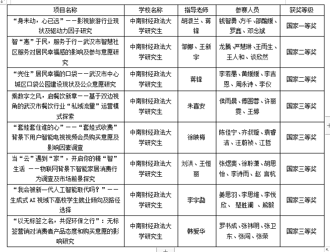 (通讯员 侍夏芳 钱智勇)5月13日至14日,由中国商业统计学会主办、南昌大学承办的“正大杯”第13届全国大学生市场调查与分析大赛(研究生组)总决赛顺利闭幕,我校荣获“最佳院校组织奖”,永利集团304am登录选送的“‘身未动,心已远’—影视旅游行业现状及崛起驱动力研究”项目荣获国家一等奖。“智‘惠’于民,服务于行—武汉市居民对智慧社区服务的满意度及参与意愿调查研究” “‘兜住’居民幸福的口袋—武汉市中心城区口袋公园建设现状及公众意愿研究”等2个项目荣获国家二等奖。“套娃式收费”背景下用户智能电视视频会员购买意愿及影响因素调查等5个项目荣获国家三等奖。