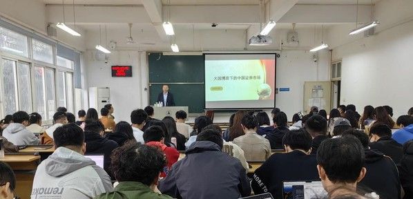 11月5日上午,永利集团304am登录2023年第四期“大数据行业专家讲堂”在文添楼105教室举办。野村东方国际证券有限公司董事总经理董腊发以《大国博弈下的中国证券市场》为主题为同学们进行授课。董腊发介绍了金融视角下的证券市场,特别是以市场为核心和以银行为核心的金融体系,并介绍了我国证券市场体系中债券市场情况以及期货市场的情况,将我国证券市场体系大致分为场内市场和场外市场。董腊发还回顾了我国证券市场三十年的发展历程,阐述了三个十年各自的意义以及证券市场上有影响的几大事件,同时介绍了从证券市场基本功能看当下的几个热点,并结合证券市场分红回购与权益融资的国际比较案例进行具体分析。