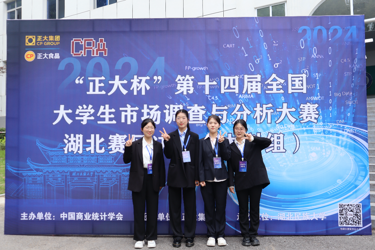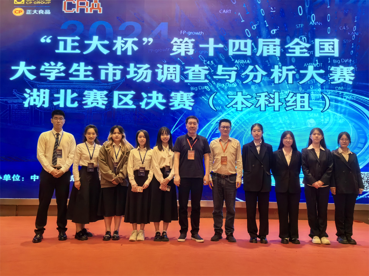 (通讯员:邹尔舒 王子涵)2024年4月26日-27日,第十四届全国大学生市场调查与分析大赛湖北省选拔赛(本科生组)在恩施州湖北民族大学举行。省组委会主任徐映梅教授在开幕式致辞,大赛金牌指导教师李占风教授、蒋锋教授担任评委,院团委书记舒鑫才老师带队参加比赛。